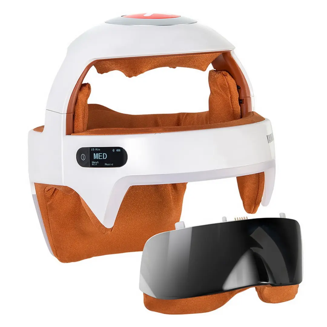 - Воздушная компрессия мягко воздействует на височные области;